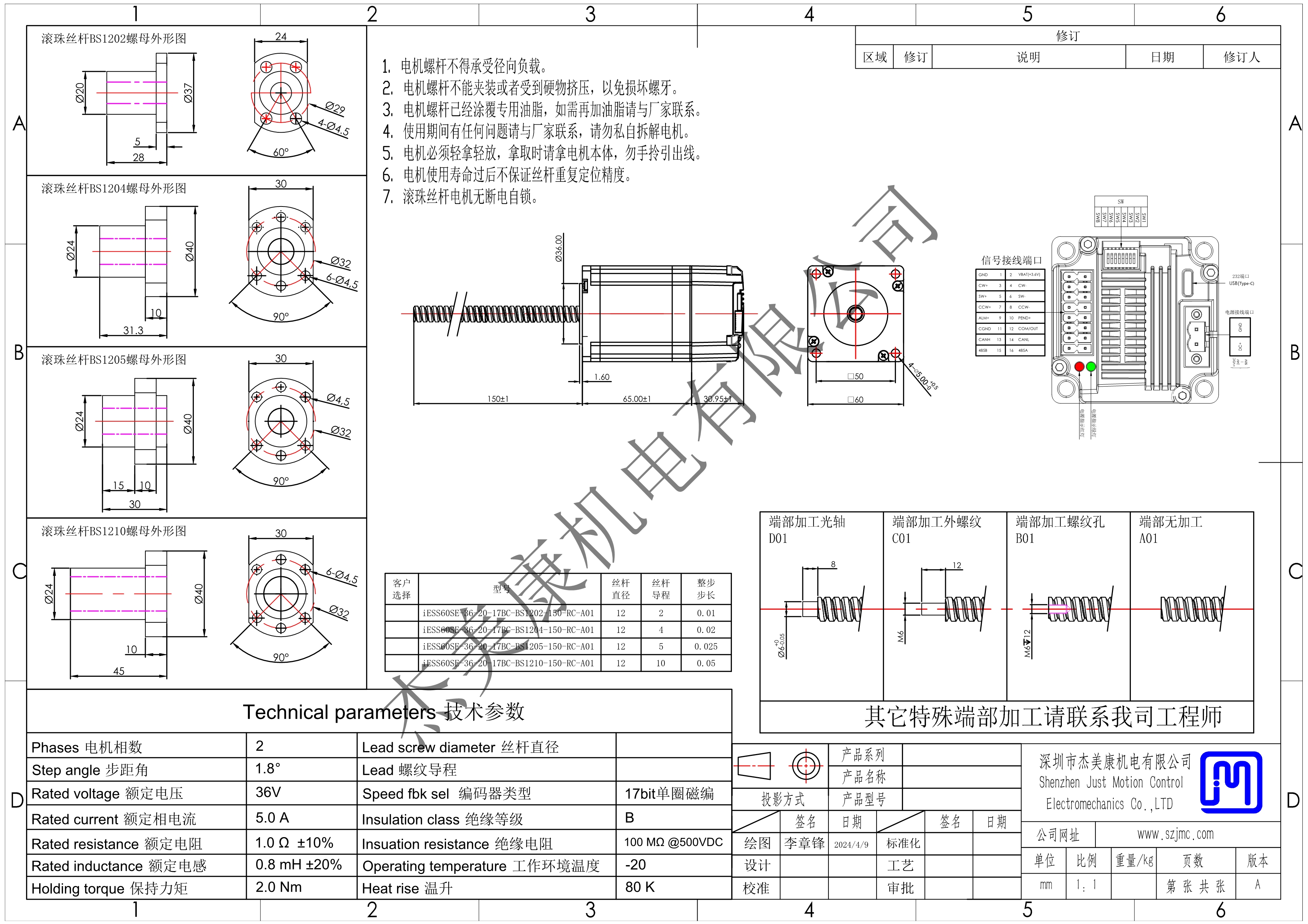 iESS60SE-36-20一体化RC总线丝杆电机