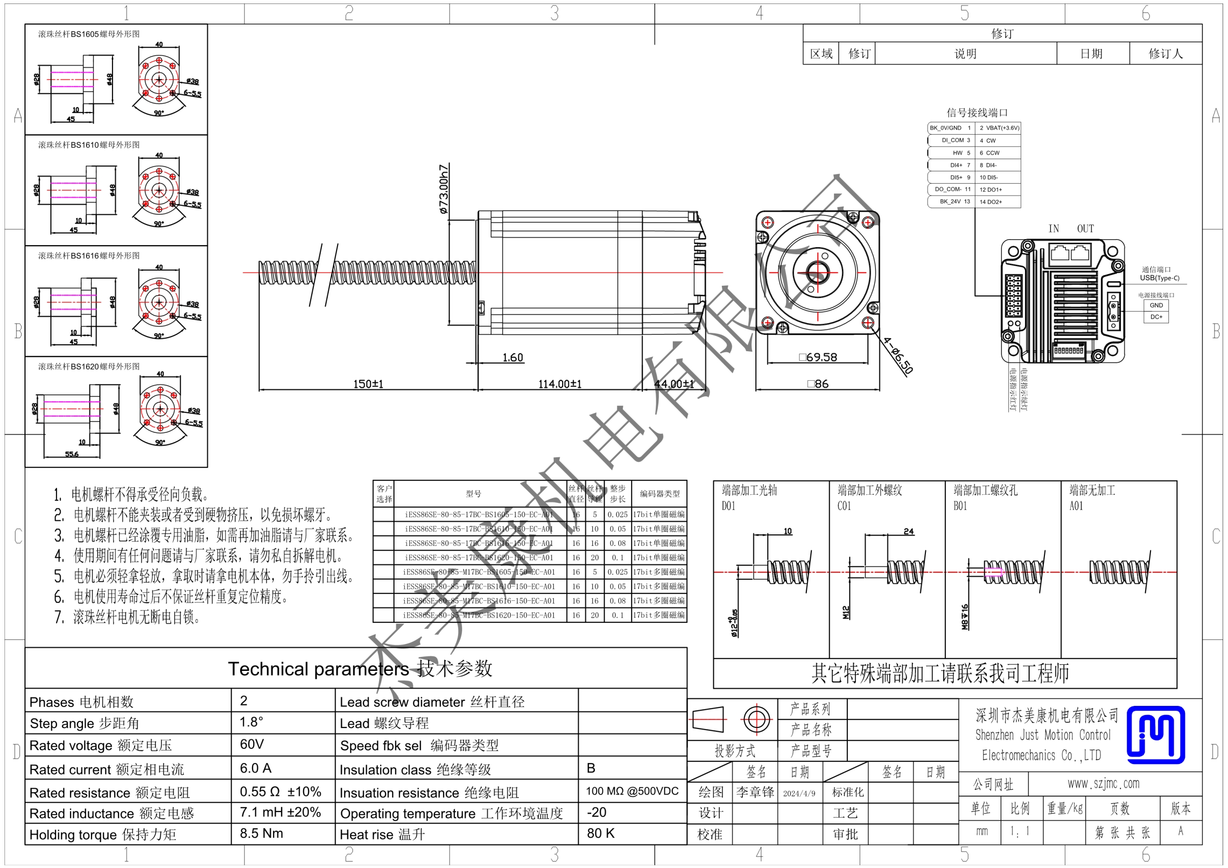 型号:iESS86SE-80-85一体化EC丝杆电机