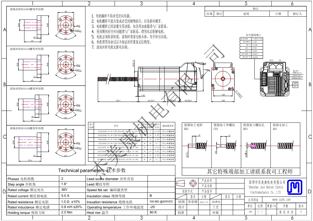 iESSL60SE-36-20一体化RC丝杆刹车电机